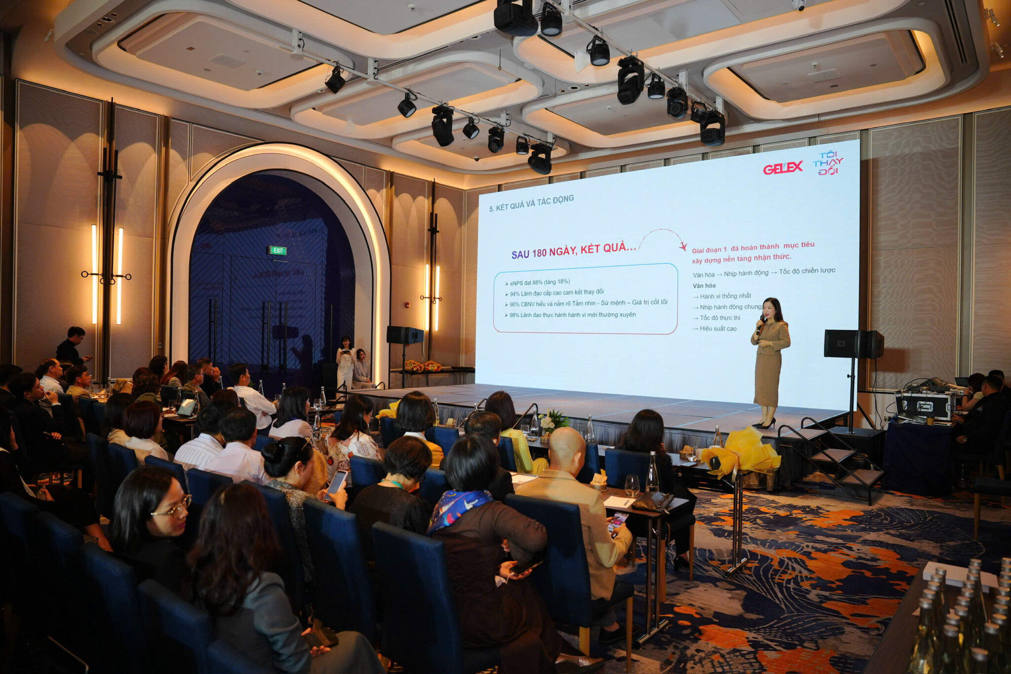 Bước vào chu kỳ phát triển mới theo mô hình Holdings, Tập đoàn Gelex xác định việc nâng cao nội lực tổ chức là yêu cầu bắt buộc để đáp ứng tốc độ thực thi chiến lược. Từ tháng 6/2025, doanh nghiệp này khởi động dự án văn hóa mang tên "Tôi thay đổi", tập trung thiết kế lại các hành vi cốt lõi và tích hợp trực tiếp vào quy trình quản trị nhân sự cũng như hệ thống đánh giá hiệu quả công việc. Theo báo cáo đo lường sau 180 ngày triển khai giai đoạn đầu, tỷ lệ nhân sự hiểu rõ nội dung thay đổi văn hóa tăng từ 70% lên 88%. Dữ liệu nội bộ ghi nhận 94% lãnh đạo cấp cao cam kết thực hiện và 90% cán bộ nhân viên nắm vững tầm nhìn, sứ mệnh cùng các giá trị cốt lõi. Khảo sát chỉ ra 98% nhân sự phản hồi đã đưa các hành vi văn hóa mới vào thực hành trong công việc hàng ngày, đi kèm tỷ lệ tham gia các khóa đào tạo đạt mức tuyệt đối 100%.