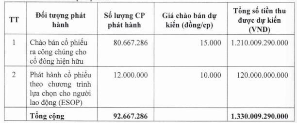Chào bán 140 triệu cổ phiếu cho cổ đông