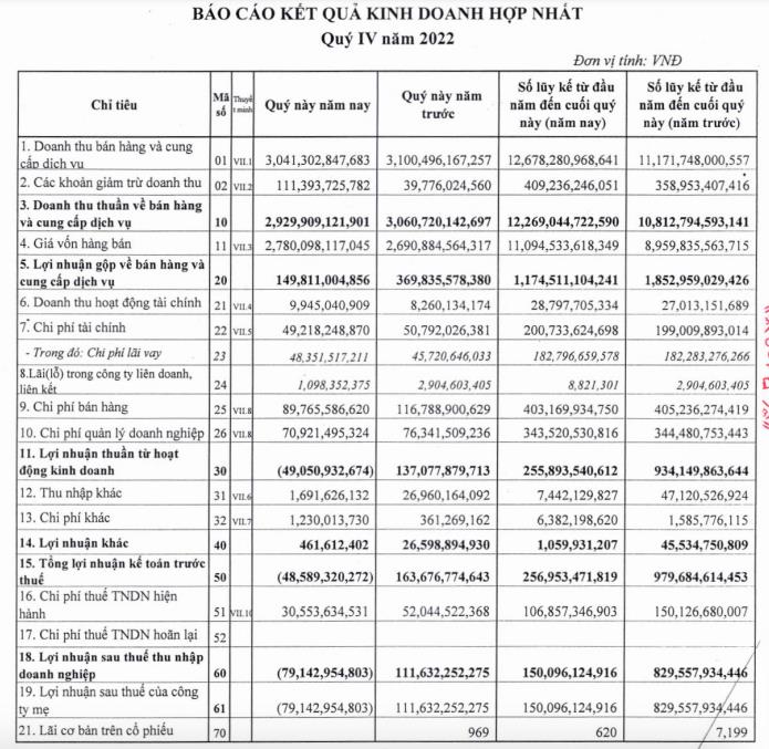 DBC ghi nhận lợi nhuận sau thuế quý IV/2022 âm 79 tỷ đồng trong khi quý IV/2021 lãi gần 112 tỷ đồng. Đây cũng là quý đầu tiên Dabaco báo lỗ kể từ quý II/2017.