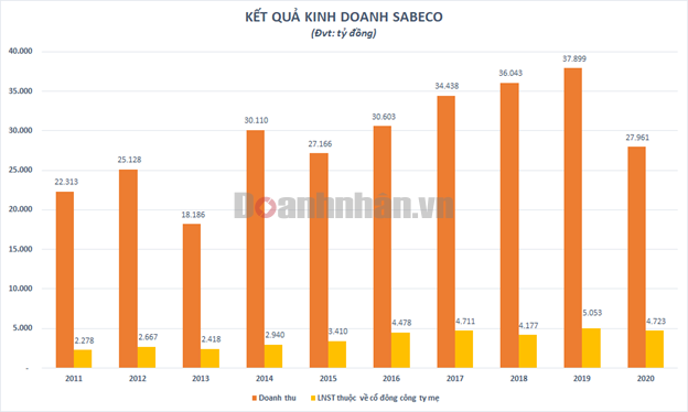 Tuy nhiên, Sabeco chưa thể tăng trưởng dương trong cả năm 2020 do tác động kép của Nghị định 100 và Covid-19 cùng ảnh hưởng tiêu cực của thiên tai. Doanh thu của doanh nghiệp này sụt giảm hơn 26% xuống gần 27.961 tỷ đồng. Lãi ròng cũng giảm 8% so với năm trước xuống gần 4.937 tỷ đồng trong đó lợi nhuận sau thuế thuộc về cổ đông công ty mẹ đạt 4.723 tỷ đồng