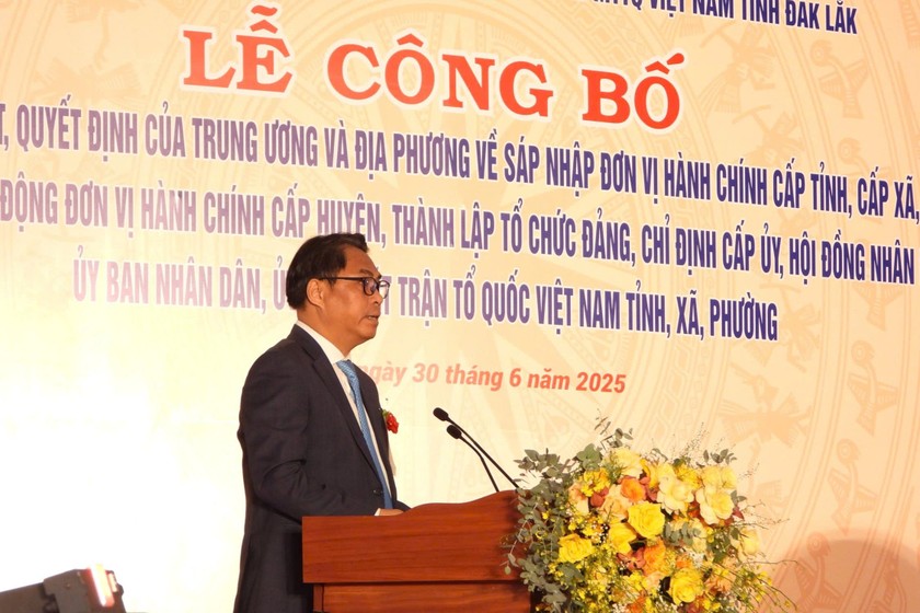 Sáng 30/6, tại phường Buôn Ma Thuột, tỉnh Đắk Lắk đã tổ chức Lễ công bố Nghị quyết, Quyết định của Trung ương và địa phương về sáp nhập đơn vị hành chính cấp tỉnh, cấp xã, kết thúc hoạt động đơn vị hành chính cấp huyện, thành lập tổ chức đảng, chỉ định cấp uỷ, HĐND, UBND, Ủy ban MTTQ Việt Nam tỉnh, xã, phường; ra mắt Ban Chấp hành Đảng bộ tỉnh Đắk Lắk mới, nhiệm kỳ 2020-2025.