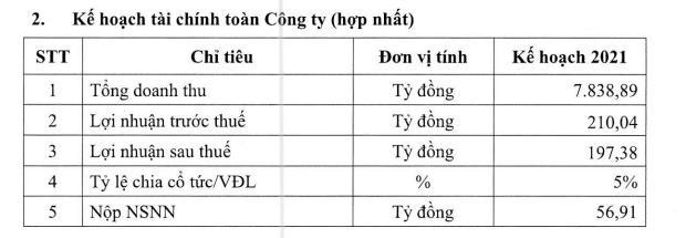 Doanh nghiệp đồng thời dự kiến kế hoạch 2021 tăng 8% và lợi nhuận trước thuế giảm 68%.