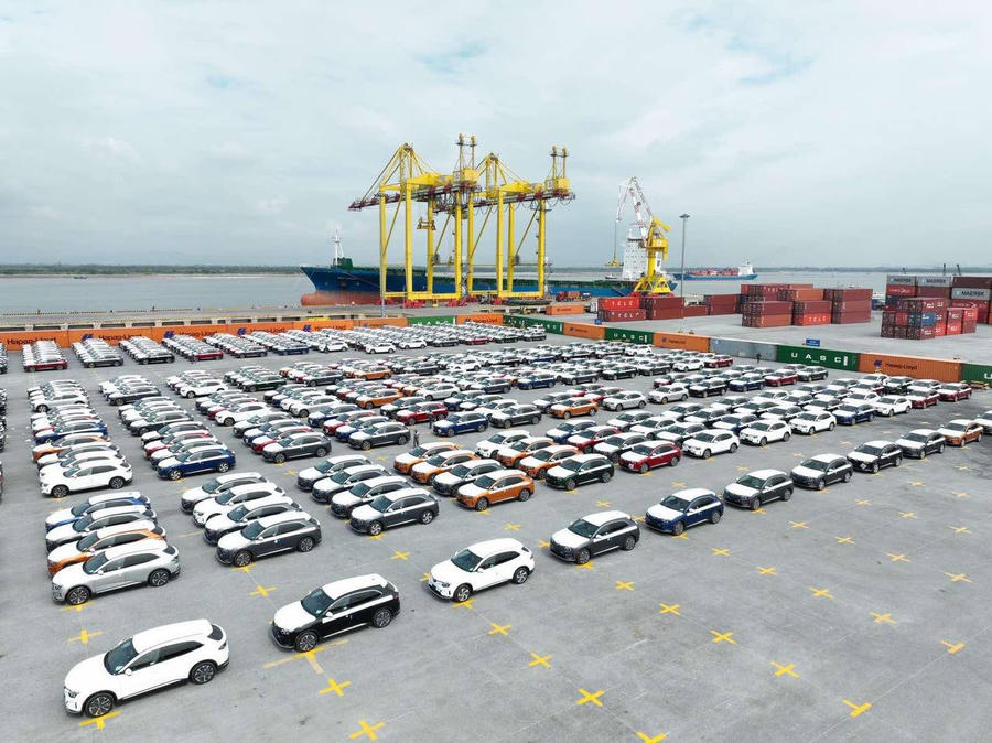 Dàn xe điện VinFast xếp hàng tại cảng Hải Phòng chờ lên tàu sang Mỹ