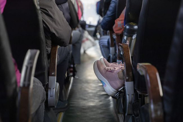 Không khí trong xe oi bức và không gian chỗ ngồi khá chật hẹp, 1 số thành viên trong đoàn bắt đầu cởi áo khoác, phóng viên cũng cảm thấy hơi bứt rứt, chân tay trở nên tê mỏi.