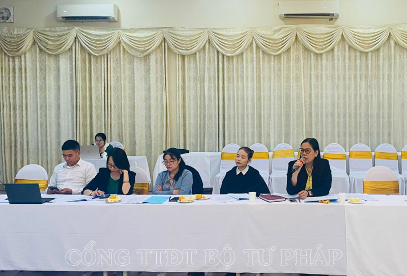 Đồng chí Trần Thu Giang – Cục Kiểm tra văn bản quy phạm pháp luật, Bộ Tư pháp báo cáo tại Hội thảo