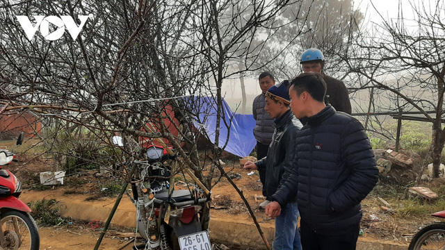 Theo người dân địa phương, đào năm nay nở hoa đúng dịp Tết và được dán tem để tiện cho việc mua bán. Giá đào ổn định như mọi năm, dao động từ 200.000 đồng đến 3 triệu đồng.