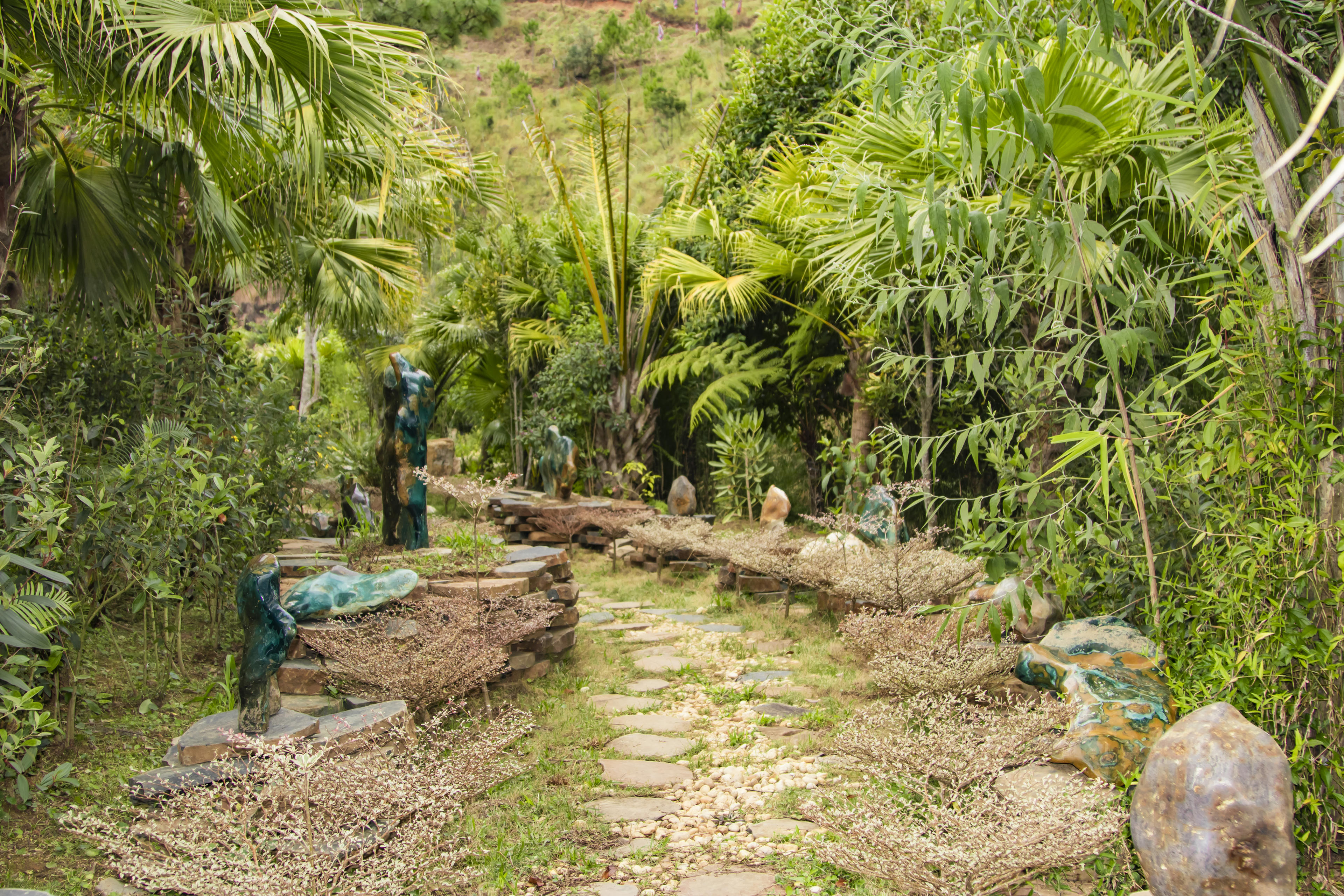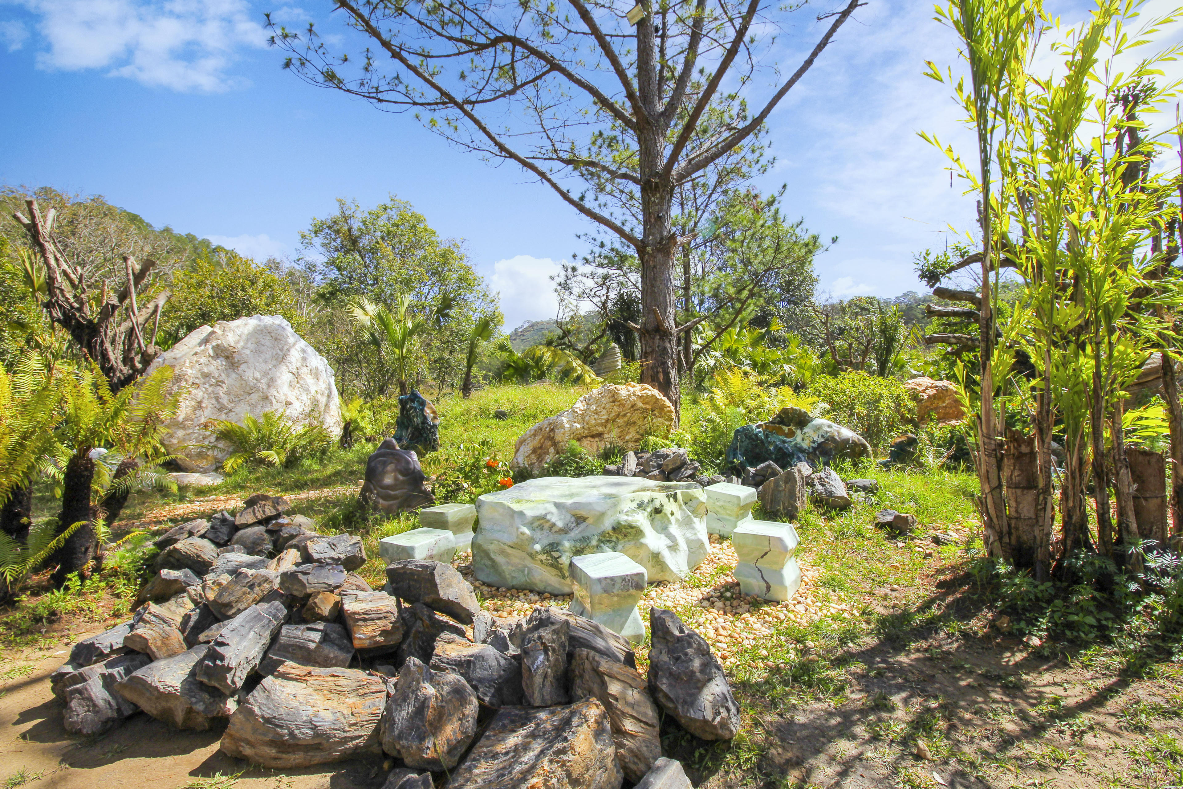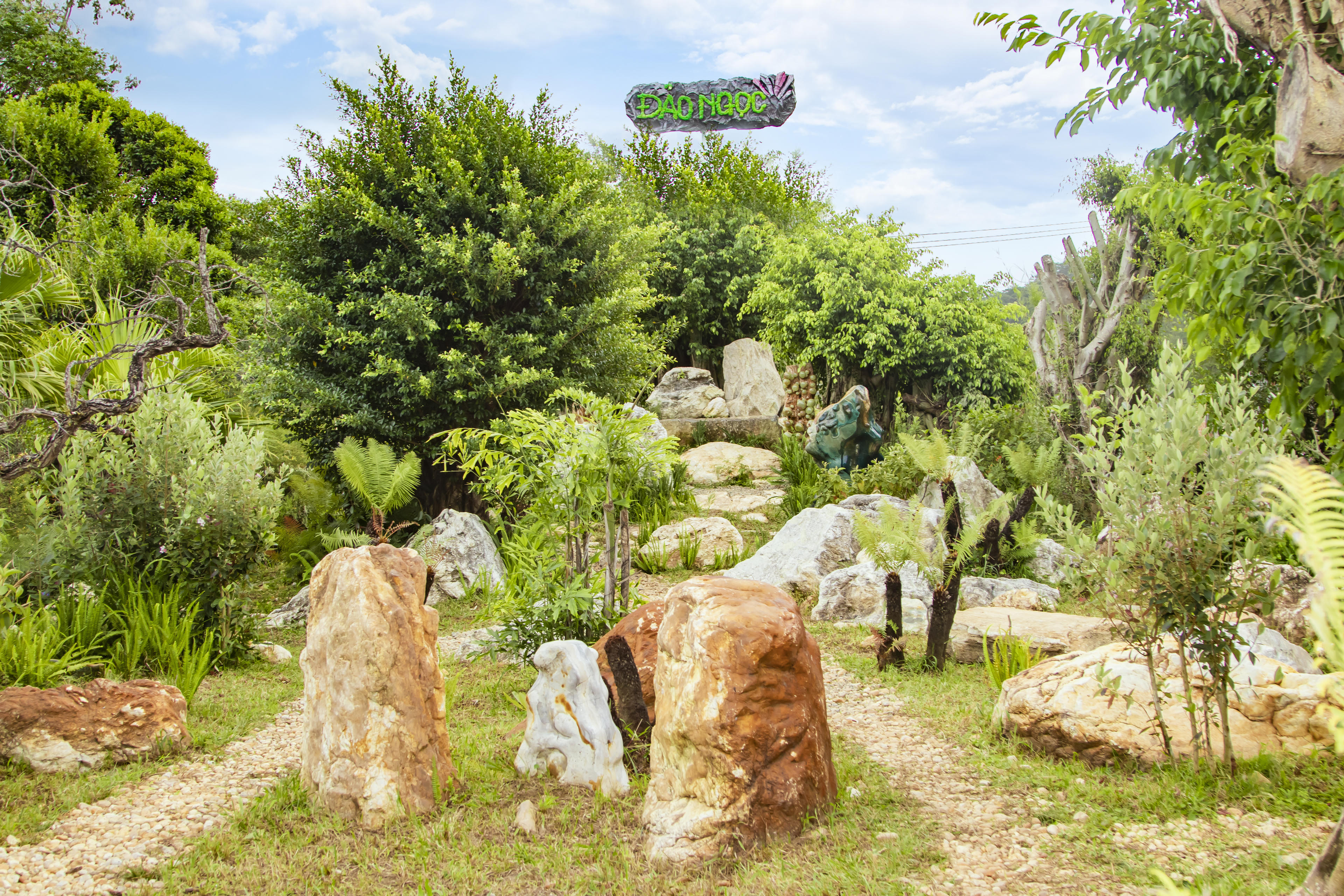 Thiên nhiên kỳ vĩ đã ban tặng cho vùng đất này một kiệt tác vô cùng quý giá. Hiếm có khu du lịch nào lại sở hữu một vẻ đẹp thơ mộng, lãng mạn và đặc biệt đến vậy. Là một hòn đảo tự nhiên, được bao quanh bởi dòng lưu thủy nên ngoài vẻ đẹp tự nhiên trời ban, Đảo đá quý còn sở hữu một bầu không khí vô cùng khoáng đạt và mát mẻ. Bước chân vào hòn đảo, ta như lạc vào thế giới của sự bình thản tách biệt, bạn sẽ được hướng dẫn để được di chuyển từ bên ngoài để vào đảo bằng đường cáp treo rất mộc, rất tự nhiên... Giữa tầng tầng, lớp lớp không gian xanh mênh mang đó là thiên hình vạn trạng những viên đá, tảng đá, thảm đá với đủ màu sắc, lung linh ẩn hiện dưới ánh nắng mặt trời. ¡nh mặt trời nơi đây không chói loá, gắt gay, khó chịu như những nơi khác mà dịu nhẹ, bay bổng hơn, bởi màu xanh của nước non sơn thủy hữu tình và lấp lánh đa sắc tinh thể của những viên đá quý lúc ẩn, lúc hiện…