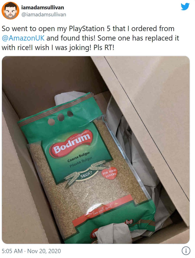 Rất nhiều người báo cáo những trường hợp đáng tiếc, khoảnh khắc vỡ òa sung sướng sau khi nhận máy nhanh chóng trở thành tột cùng thất vọng. Sau khi mở hộp, thay vì là chiếc console đời mới mà bạn đã chờ đợi hàng tháng trời, lại là hộp thức ăn cho mèo, đồ chơi, dụng cụ nhà bếp hay thậm chí chẳng có gì. Điều tệ là họ gần như rất khó được thay thế bằng đúng sản phẩm đã mua, bởi lượng hàng PS5 lúc này vô cùng hiếm.