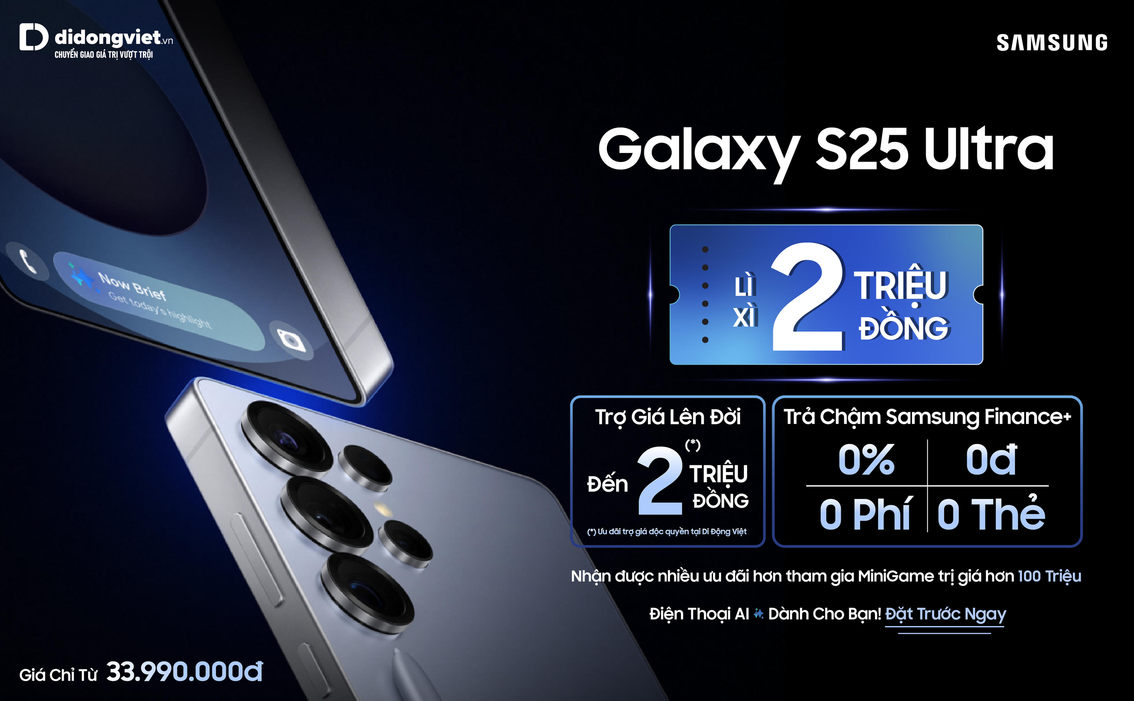 Đặt trước Samsung Galaxy S25 ưu đãi lớn tại Di Động Việt: Bộ quà hơn 16 triệu đồng, cơ hội nhận vàng 9999