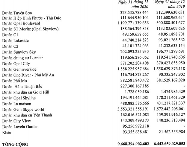 Tính đến cuối năm 2020, tổng tài sản của Đất Xanh đã tăng 18% so với đầu kỳ lên 23.511 tỷ đồng chủ yếu đến từ tồn kho dưới dạng bất động sản dở dang, trong đó đáng chú ý dự án GSW đã tăng gần 2.000 tỷ đồng so với đầu năm.