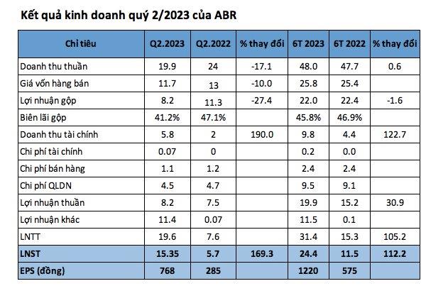 Công ty Cổ phần Đầu tư Nhãn hiệu Việt (mã CK: ABR) đã công bố BCTC quý 2/2023 với lợi nhuận tăng cao so với cùng kỳ.