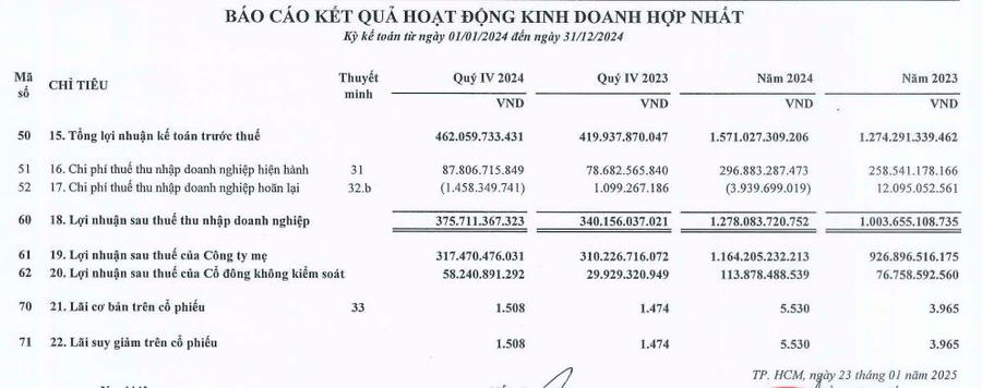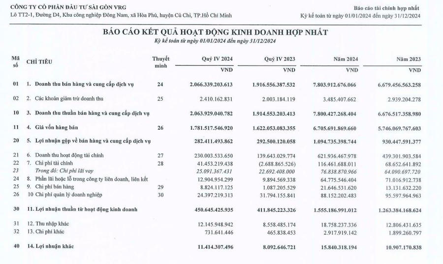 Đầu tư Sài Gòn VRG (SIP) báo lãi sau thuế cả năm 2024 hơn 1.200 tỷ đồng