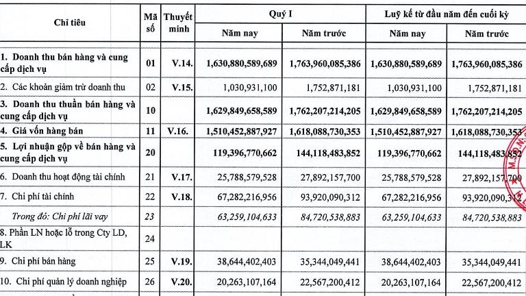 Cùng với đó, chi phí tài chính giảm mạnh từ 93 tỷ đồng xuống còn 67,2 tỷ đồng, tương ứng giảm 28% so với cùng kỳ năm trước. Sự sụt giảm này chủ yếu do lãi tiền vay, giảm 25% còn 63,2 tỷ đồng.