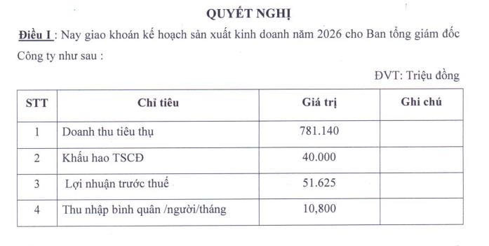 Lãnh đạo TDT đặt doanh thu tiêu thụ dự kiến đạt hơn 781 tỷ đồng, lợi nhuận trước thuế ước đạt 51,6 tỷ đồng, tăng cao so với kế hoạch năm 2025.