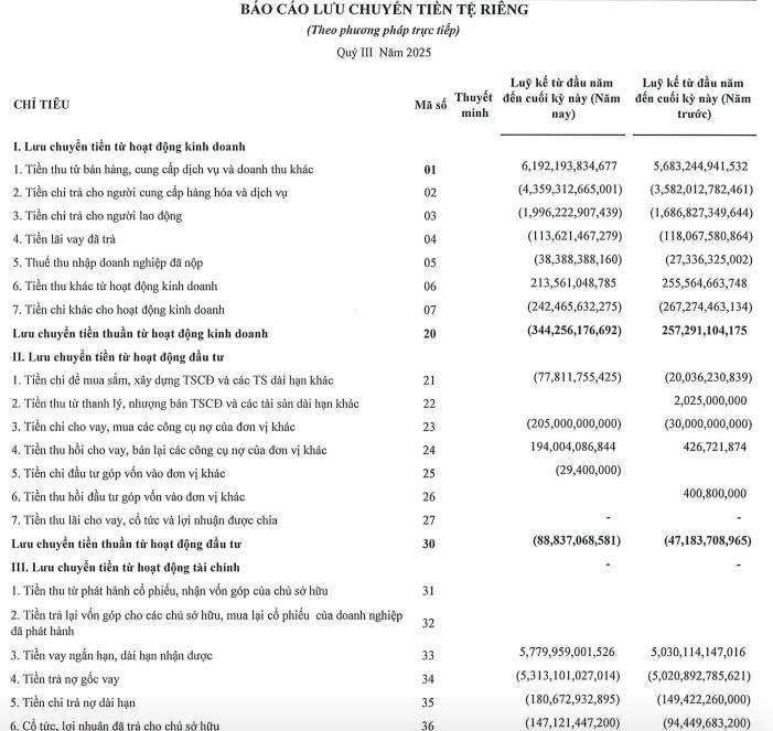 Lợi nhuận thuần từ hoạt động kinh doanh ghi nhận mức 147,8 tỷ đồng, tăng 6%. Cùng lúc đó, chi phí tài chính giảm 23% xuống còn 75,4 tỷ đồng và chi phí bán hàng giảm 5% còn 34,9 tỷ đồng, góp phần bù đắp áp lực từ giá vốn. Ngược lại, chi phí quản lý tăng 15% lên gần 137,1 tỷ đồng.