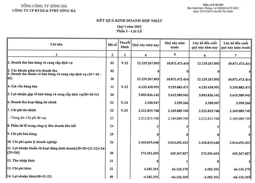 Về bức tranh tài chính, trong 3 tháng đầu năm 2025, SDU ghi nhận doanh thu đạt 12,1 tỷ đồng, tăng 11% so với cùng kỳ năm ngoái. Doanh thu tăng nhờ chủ yếu từ hoạt động dịch vụ tòa nhà và cho thuê văn phòng.
