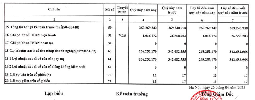 Dù vậy, công ty báo lãi sau thuế đạt 268 triệu đồng, giảm 22% so với cùng kỳ.