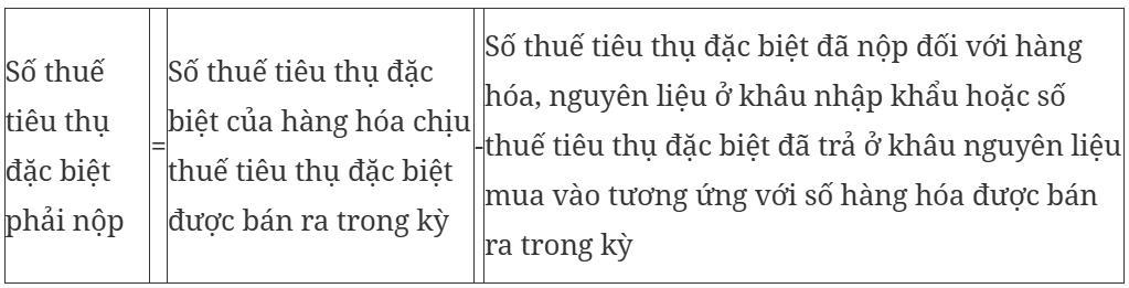 8. Việc khấu trừ tiền thuế tiêu thụ đặc biệt được thực hiện khi kê khai thuế tiêu thụ đặc biệt và số thuế tiêu thụ đặc biệt phải nộp được xác định theo công thức sau: