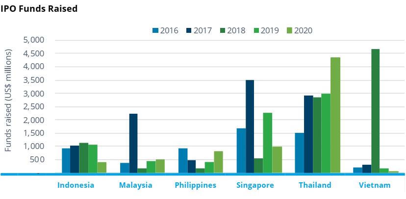 Năm 2020, khu vực ASEAN đã chứng kiến 114 vụ IPO với tổng số vốn huy động được là 7 tỷ USD.
