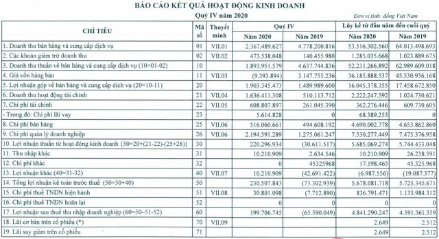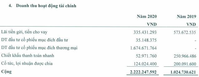 Lũy kế cả năm 2020, DAE ghi nhận doanh thu thuần giảm 17% so với cùng kỳ, xuống còn 52 tỷ đồng. Ngược lại, doanh thu hoạt động tài chính ghi nhận hơn 2 tỷ đồng, gấp 2,2 lần cùng kỳ.