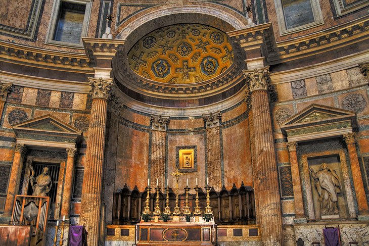 Du khách đặt chân vào đền Pantheon chắc hẳn không khỏi choáng ngợp khi chiêm ngưỡng mái vòm khổng lồ ở đây. Đặc biệt, mái vòm này không có cốt thép. Vì vậy, đây là mái vòm bê tông không có cốt thép lớn nhất và duy nhất trên toàn thế giới. Tại đây, du khách sẽ có cảm giác đi ngược thời gian, những trải nghiệm như còn vẹn nguyên như cách đây gần 2.000 năm.