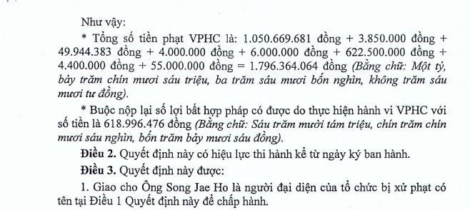 Với những sai phạm nêu trên, công ty bị phạt vi phạm hành chính với số tiền là hơn 1,79 tỷ đồng.