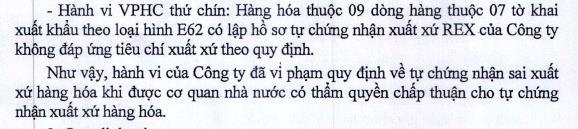 Cuối cùng, hàng hoá thuộc 9 dòng hàng thuộc 7 tờ khai xuất khẩu theo loại hình E62 có lập hồ sơ tự chứng nhận xuất xứ REX của Dệt may Thành Công không đáp ứng tiêu chí xuất xứ theo quy định.