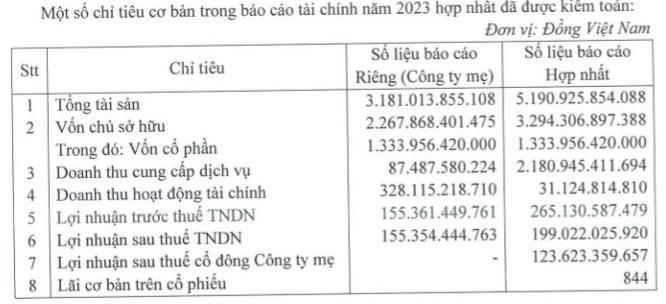 Cụ thể, theo báo cáo tài chính hợp nhất kiểm toán năm 2023, Viconship ghi nhận doanh thu đạt gần 2.181 tỷ đồng; lợi nhuận trước thuế đạt hơn 265 tỷ đồng.