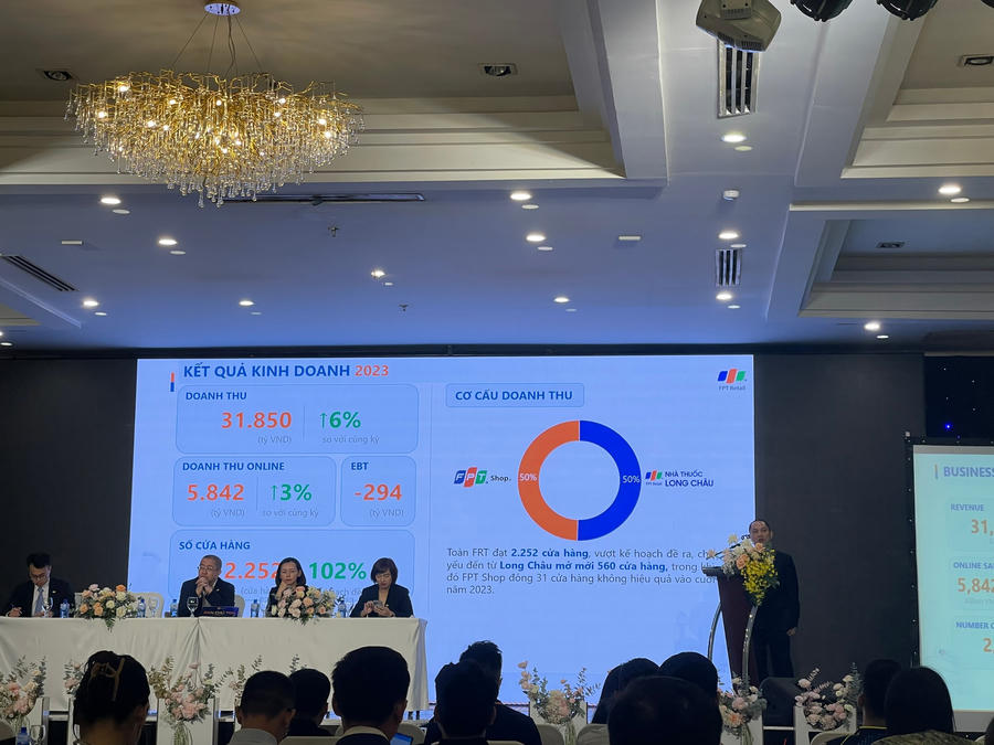 Nội dung trình đại hội kế hoạch kinh doanh năm 2024 được thông qua kế hoạch doanh thu 37.300 tỷ đồng, tăng 17% và lợi nhuận trước thuế là 125 tỷ đồng. Trong đó, doanh thu chuỗi FPT Shop dự kiến đi ngang và doanh thu chuỗi FPT Long Châu dự kiến tăng khoảng 34%.