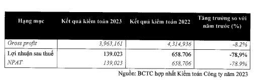 Với kết quả có phần kém tích cực này chỉ giúp Tập đoàn Golden Gate hoàn thành 91,3% kế hoạch doanh thu gần 6.887 tỷ đồng và 83% kế hoạch lợi nhuận sau thuế hơn 167 tỷ đồng đã đề ra. Đáng nói, mục tiêu đề ra này đã được điều chỉnh giảm lần lượt 1% và 75% so với thực hiện năm 2022.