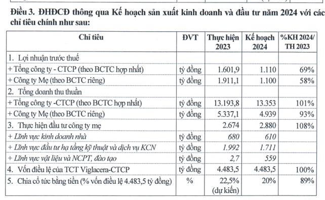 ĐHĐCĐ năm 2024 của Viglacera (VGC): đặt mục tiêu lãi sau thuế 1.110 tỷ đồng