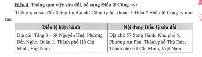 Bên cạnh thay đổi dàn nhân sự lãnh đạo, Đại hội đồng cổ đông TDH còn thông qua thay đổi địa chỉ trụ sở, từ số 68 Nguyễn Huệ, phường Bến Nghé, quận 1, TPHCM sang số 57 Song Hành, khu phố 5, phường An Phú, TP Thủ Đức, TP HCM.