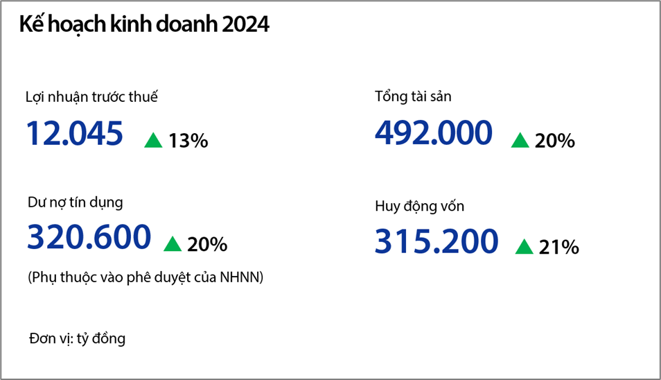 ĐHĐCĐ đã thông qua kế hoạch kinh doanh năm 2023 do HĐQT đề xuất, bao gồm tăng trưởng tổng tài sản, dư nợ, huy động vốn và lợi nhuận. Trong đó, mức tăng trưởng dư nợ tín dụng có thể được điều chỉnh tùy thuộc vào hạn mức của NHNN.