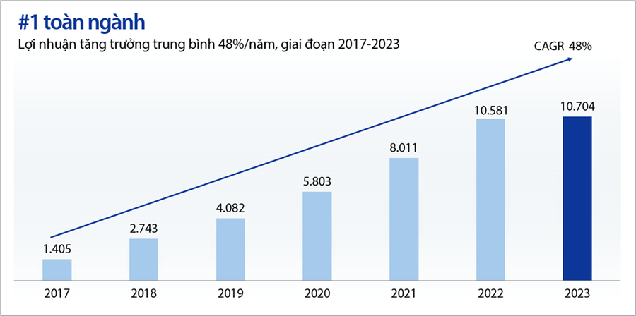 Hiệu quả kinh doanh ở top đầu ngành, lợi nhuận tăng trưởng trung bình 48%/năm trong 7 năm chuyển đổi