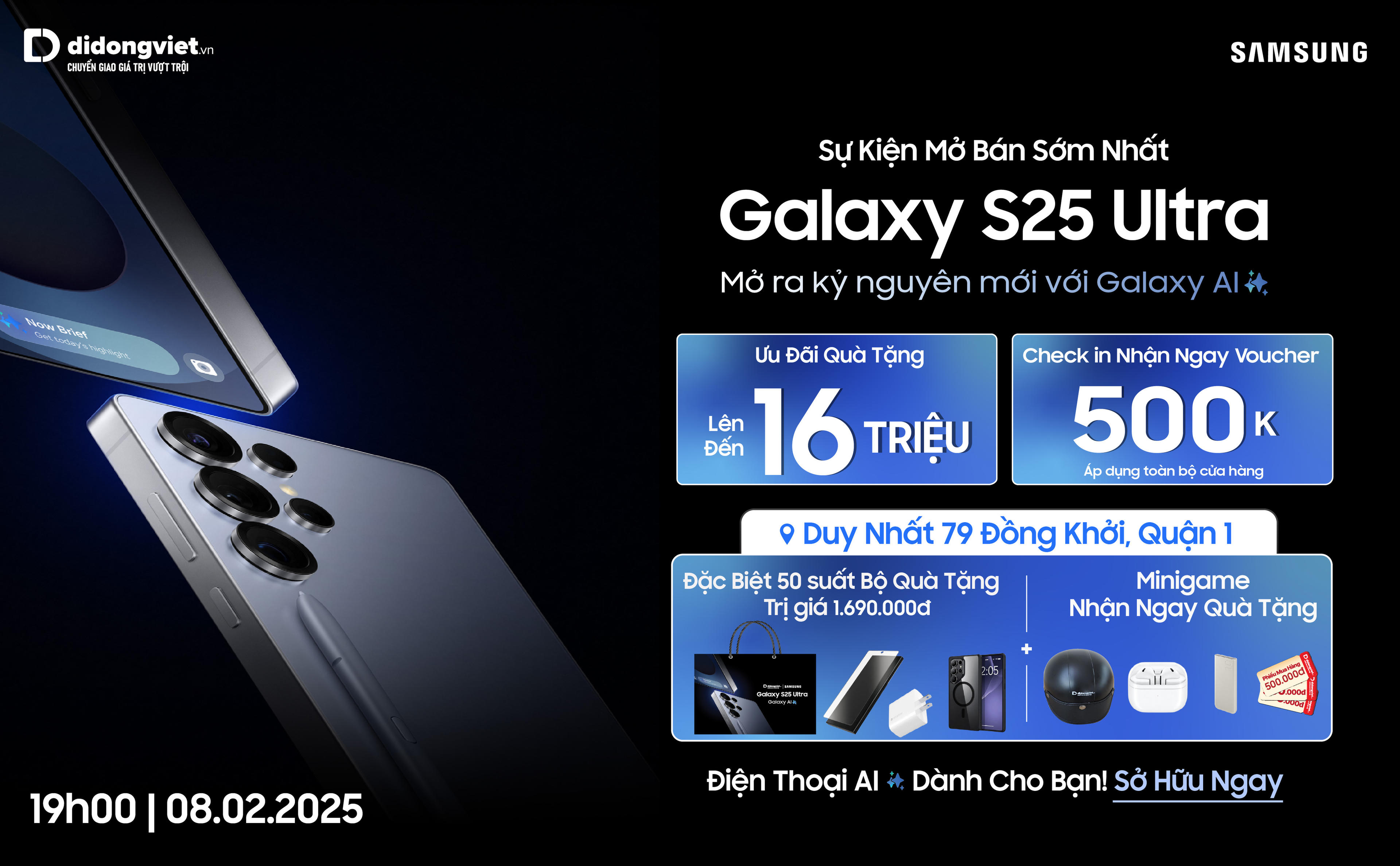 Độc giả có nhu cầu tham khảo, sở hữu sớm nhất Samsung Galaxy S25 series hoặc mua sắm các sản phẩm điện thoại di động chính hãng có thể tìm hiểu thêm tại website: didongviet.vn, hoặc gọi tổng đài 1800.6018 (miễn phí).