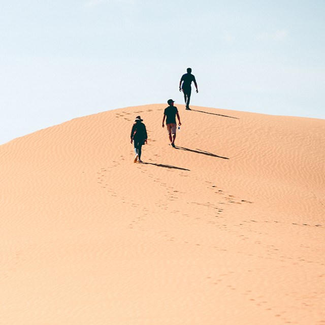 Có dịp tới đây, đừng quên lên xe, ga mạnh và băng lên đỉnh đồi cát. Chiếc xe rẽ cát di chuyển. Thế rồi, từ đỉnh đồi cát chạy xuống sẽ chứng kiến “suối cát” vàng lấp lánh chảy dài tận đến cuối trời.