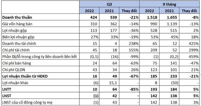 Tổng tài sản đến cuối quý III/2022 đạt 15.829, giảm hơn 1.000 tỷ đồng so với đầu năm.