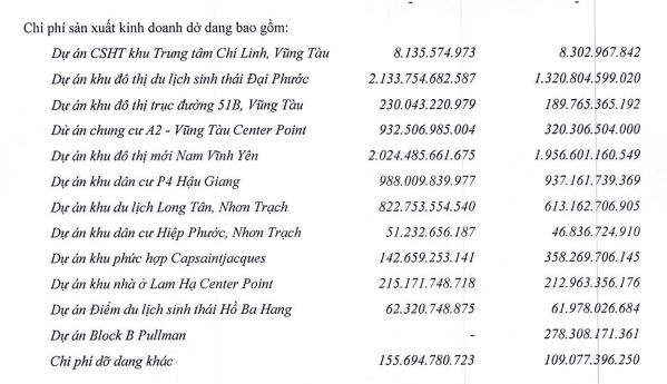 Hàng tồn kho tăng chủ yếu đến từ chi phí sản xuất kinh doanh dở dang tại dự án khu đô thị du lịch sinh thái Đại Phước đã tăng từ 1.320 tỷ đồng hồi đầu năm lên 2.130 tỷ đồng vào cuối tháng 9/2024.