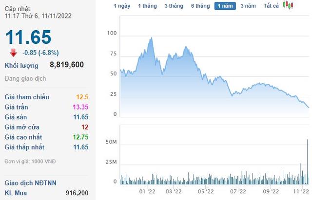 Trên thị trường, sau đà tăng nóng tiệm cận gần 100.000 đồng/cp vào hồi đầu năm, cổ phiếu DIG đang trượt dài về vùng đáy cách đây 2 năm. Phiên sáng 11/11, DIG giao dịch quanh mốc 11.650 đồng/cp, tức mức giảm hơn 88% so với hồi đầu năm.