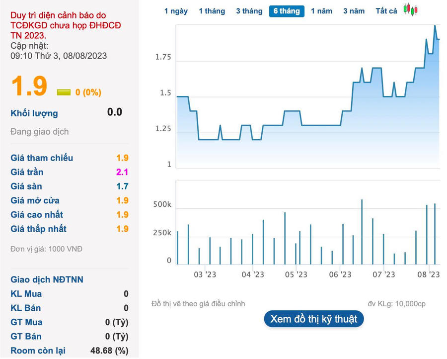 Bên cạnh đó, HNX mới đây cũng đã quyết định duy trì diện cảnh báo đối với cổ phiếu DIC do tổ chức đăng ký giao dịch chưa họp Đại hội đồng cổ đông thường niên năm 2023 trong thời hạn tối đa kể từ thời điểm kết thúc năm tài chính theo quy định.
