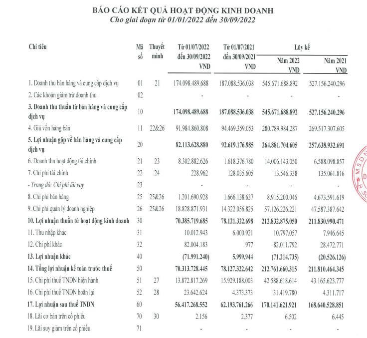 Lũy kế 9 tháng đầu năm, doanh thu thuần của NCT đạt 545,6 tỷ đồng, tăng 3,5% so với cùng kỳ năm ngoái; lợi nhuận sau thuế tăng 2 tỷ đồng lên 170 tỷ đồng.