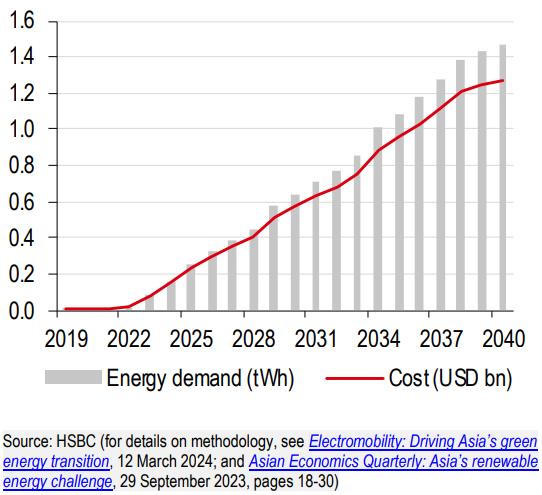 Theo quan điểm của HSBC, chìa khóa để vượt qua những rào cản phổ biến ô tô điện ở Việt Nam nằm ở đầu tư cơ sở hạ tầng vốn cũng là một trở ngại đối với chuyển dịch năng lượng nói chung của quốc gia này. HSBC ước tính chỉ riêng lắp đặt đủ hạ tầng sạc xe điện và công suất phát điện tái tạo đủ cho lượng xe điện mới theo dự báo sẽ cần khoảng 12,3 tỷ USD đầu tư và 14tWh năng lượng cộng dồn trong giai đoạn 2024-2040.