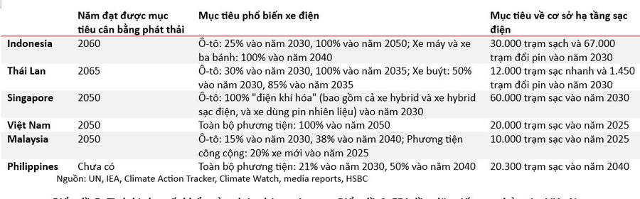 Đầu tư từ Trung Quốc gia tăng có thể thúc đẩy hợp tác sản xuất với nước láng giềng Thái Lan nơi hãng BYD đang xây dựng một nhà máy trị giá 504 triệu USD để xuất khẩu xe điện sang Việt Nam với mức thuế nhập khẩu 0% áp dụng cho tất cả các nền kinh tế ASEAN. Nếu tận dụng các mối quan hệ hợp tác với Trung Quốc và vượt qua những rào cản phổ biến xe điện cả trong và ngoài nước, HSBC cho rằng Việt Nam có tiềm năng để tăng tốc vượt qua các nước láng giềng ASEAN trong cuộc đua xanh hóa phương tiện giao thông.