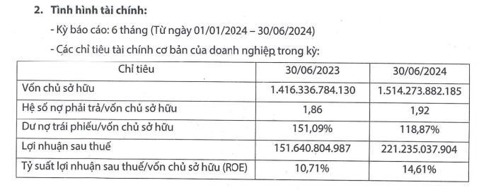 Hệ số nợ vay trái phiếu/vốn chủ sở hữu là 118,87%, tương ứng dư nợ trái phiếu khoảng 1.800 tỷ đồng.