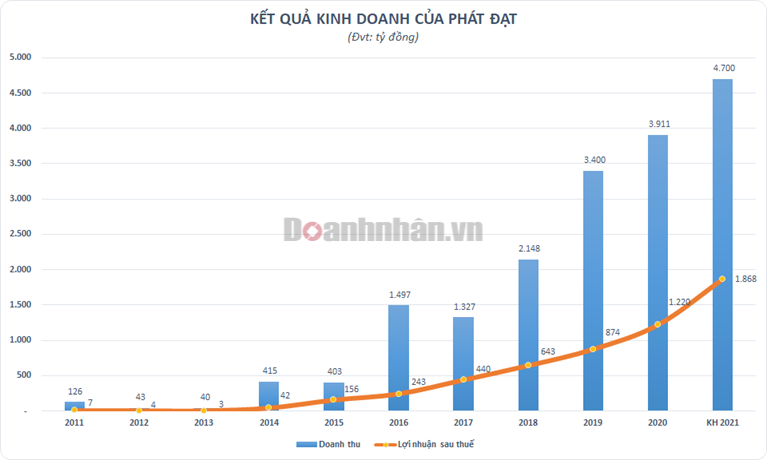 Với các dự án đã và đang triển khai, kết quả kinh doanh của doanh nghiệp bất động sản này có sự tăng trưởng tích cực trong những năm qua. Năm 2020, Phát Đạt ghi nhận 3.911 tỷ đồng doanh thu và 1.220 tỷ đồng lợi nhuận sau thuế, lần lượt tăng trưởng 15% và 40% so với năm trước. Tốc độ tăng trưởng kép giai đoan 10 năm (2011-2020) lên đến 41% về doanh thu và 68% về lợi nhuận sau thuế.