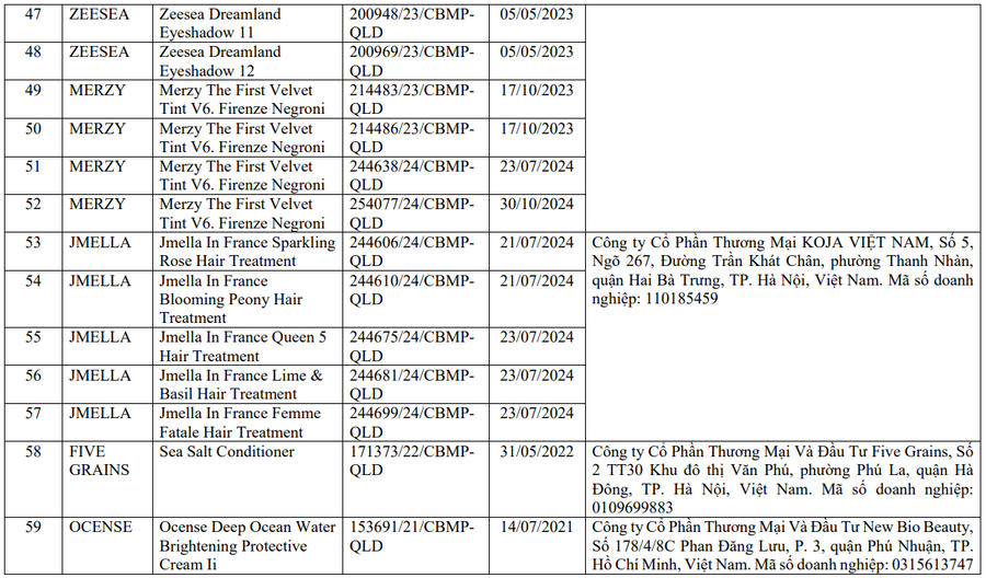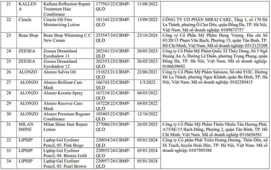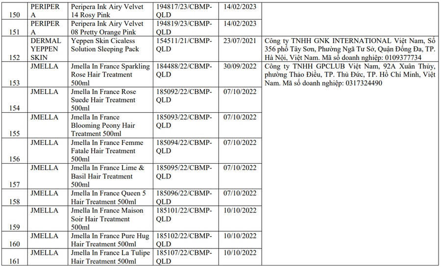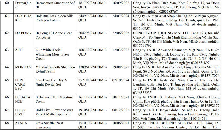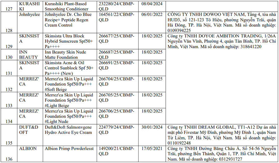 Cục Quản lý Dược yêu cầu các sở y tế tỉnh, thành phố trực thuộc Trung ương thông báo đến các cơ sở kinh doanh, sử dụng mỹ phẩm trên địa bàn ngừng ngay việc kinh doanh, phân phối và sử dụng các sản phẩm thuộc danh mục bị thu hồi; đồng thời tổ chức thu hồi, giám sát việc thu hồi và xử lý theo quy định.