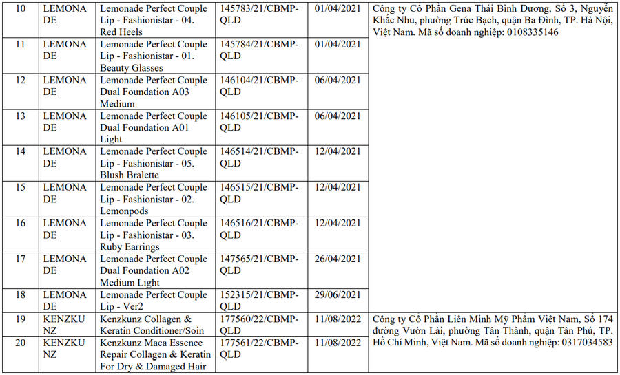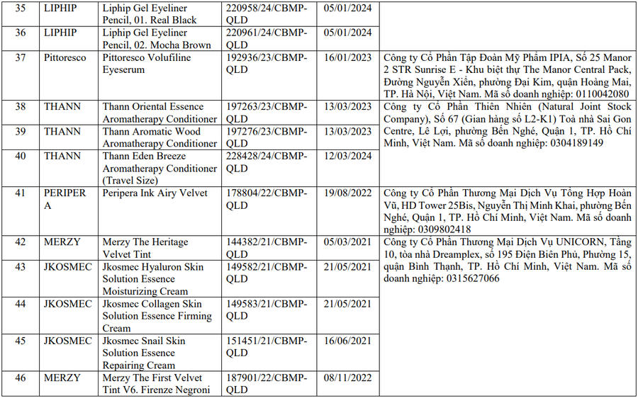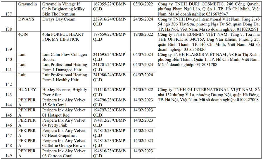 Các doanh nghiệp đứng tên công bố sản phẩm có trách nhiệm gửi thông báo thu hồi tới các đơn vị phân phối, sử dụng; tiếp nhận sản phẩm bị trả lại và thực hiện tiêu hủy toàn bộ số mỹ phẩm không đáp ứng quy định. Báo cáo kết quả thu hồi, tiêu hủy phải được gửi về Cục Quản lý Dược trong thời hạn quy định.