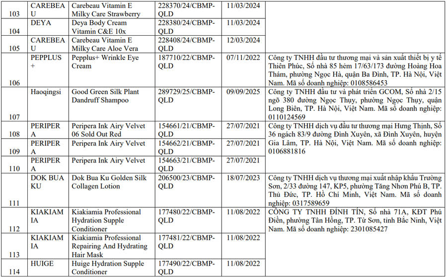 Cục Quản lý Dược cũng khuyến cáo người tiêu dùng kiểm tra thông tin sản phẩm đang sử dụng, chủ động ngừng sử dụng các sản phẩm thuộc danh mục bị thu hồi và liên hệ với cơ sở bán hàng hoặc doanh nghiệp công bố để được hướng dẫn xử lý.