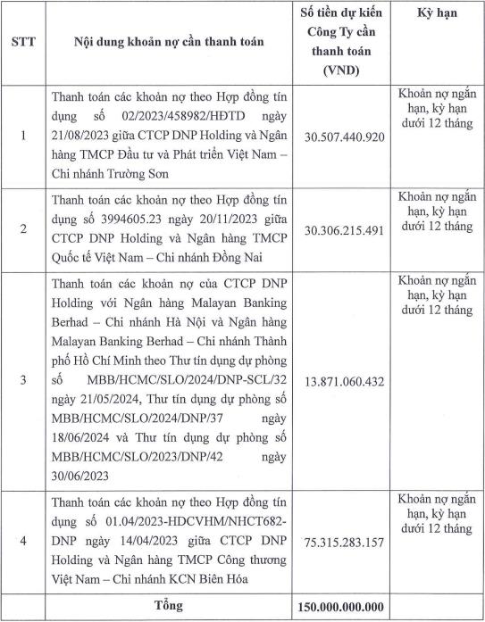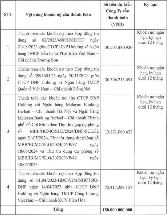 Mục đích của DNP nhằm cơ cấu lại các khoản nợ dưới 12 tháng tại các ngân hàng: VietinBank, BIDV, VIB và Malayan Banking Berhad.