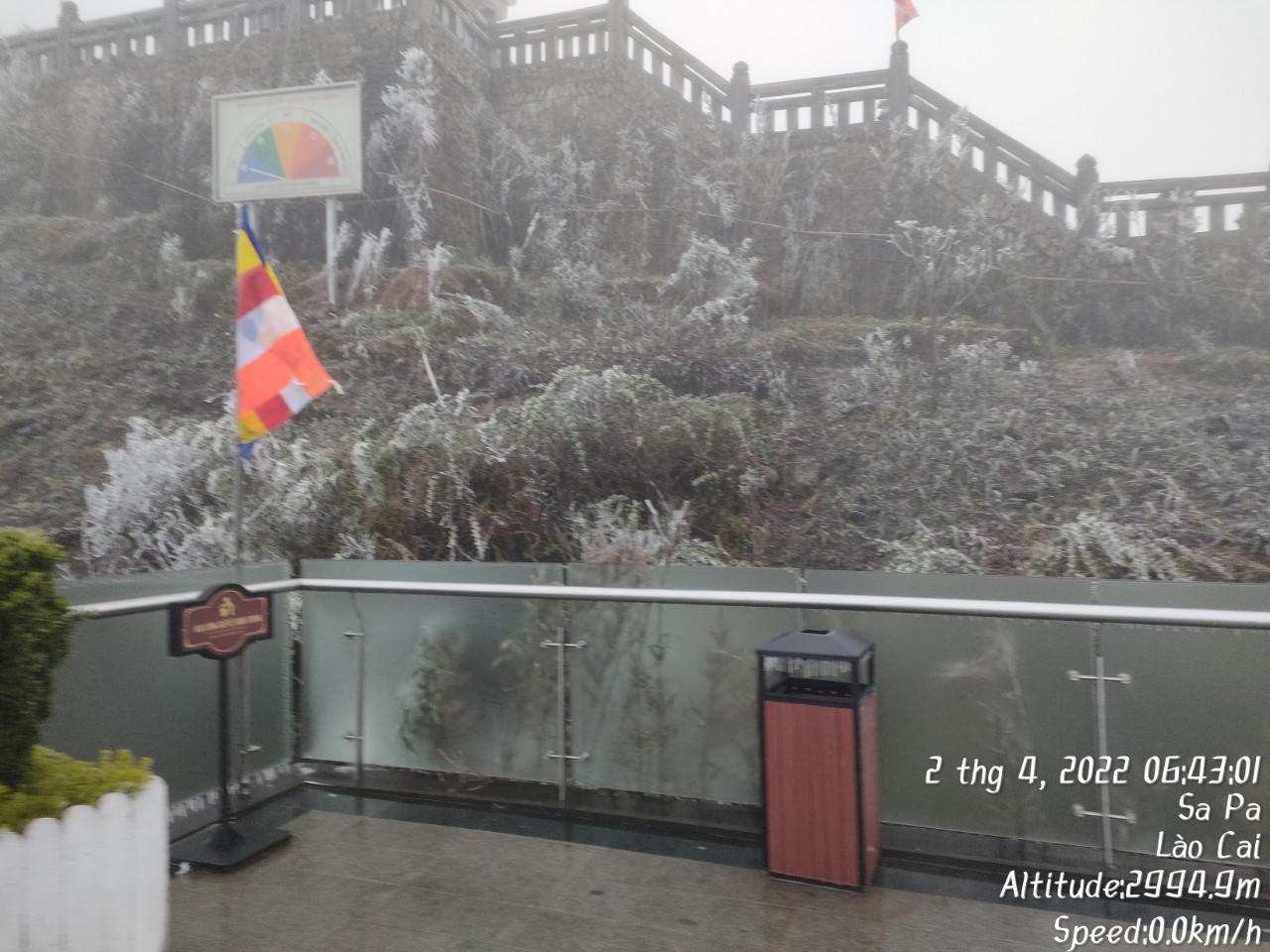 Theo thông tin từ trung tâm khí tượng thủy văn Lào Cai, do ảnh hưởng của gió mùa Đông Bắc, trong hai ngày 1 và 2/ 4 nhiệt độ Sapa giảm sâu, xuống 7-8 độ C, trời chuyển rét, vùng núi như đỉnh Fansipan nơi rét đậm, có thể xảy ra hiện tượng băng giá.
